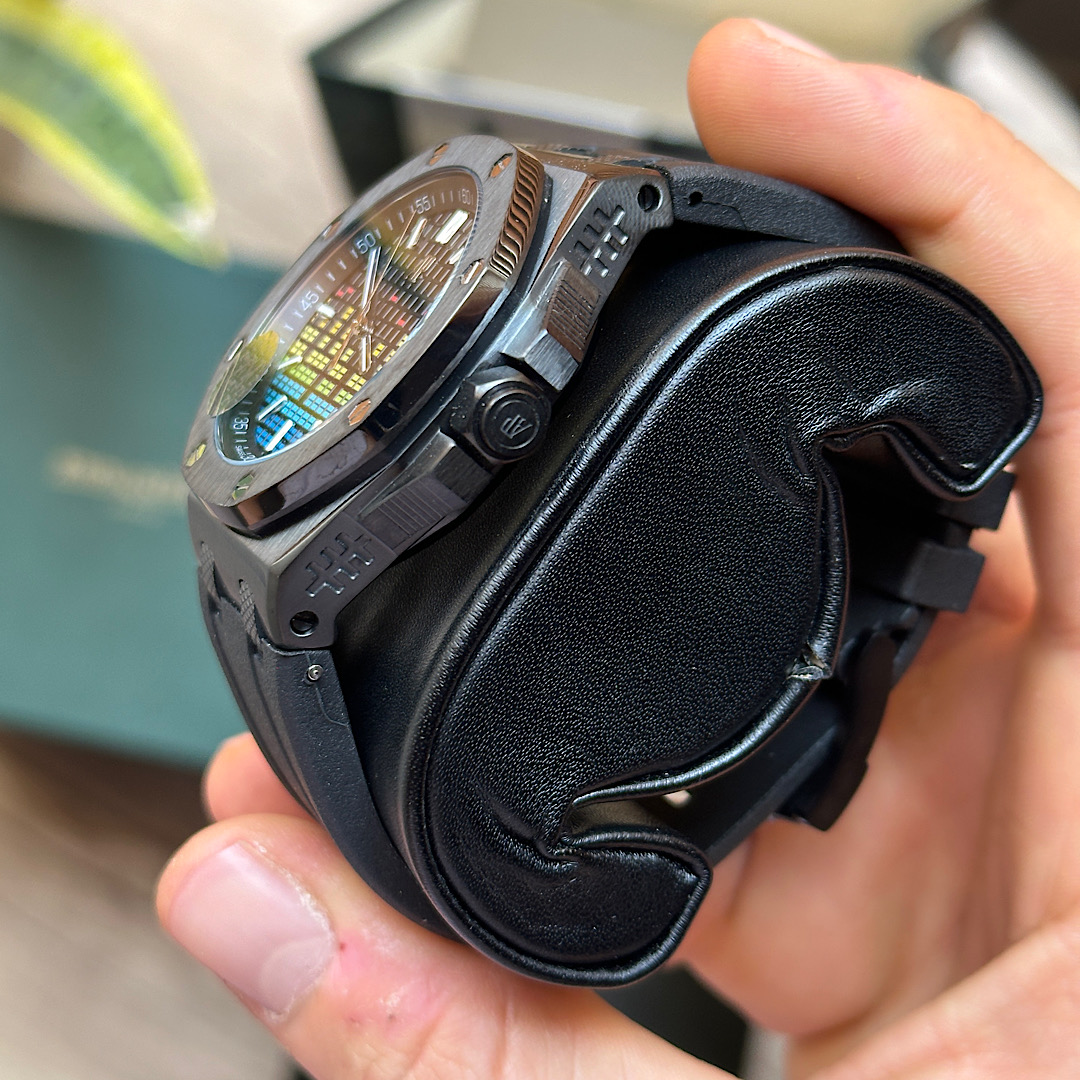 حالا کمپانی AP با کمی تغییرات جزئی و خلاقانه این ساعت رو با نسخه موزیکال با الهام از نوت های موزیک به دنیا معرفی کرد و با قرار دادن تعدادی نگین سوارفسکی در اطراف قاب ظاهر نیمه کلاسیکی هم به اون داد.
