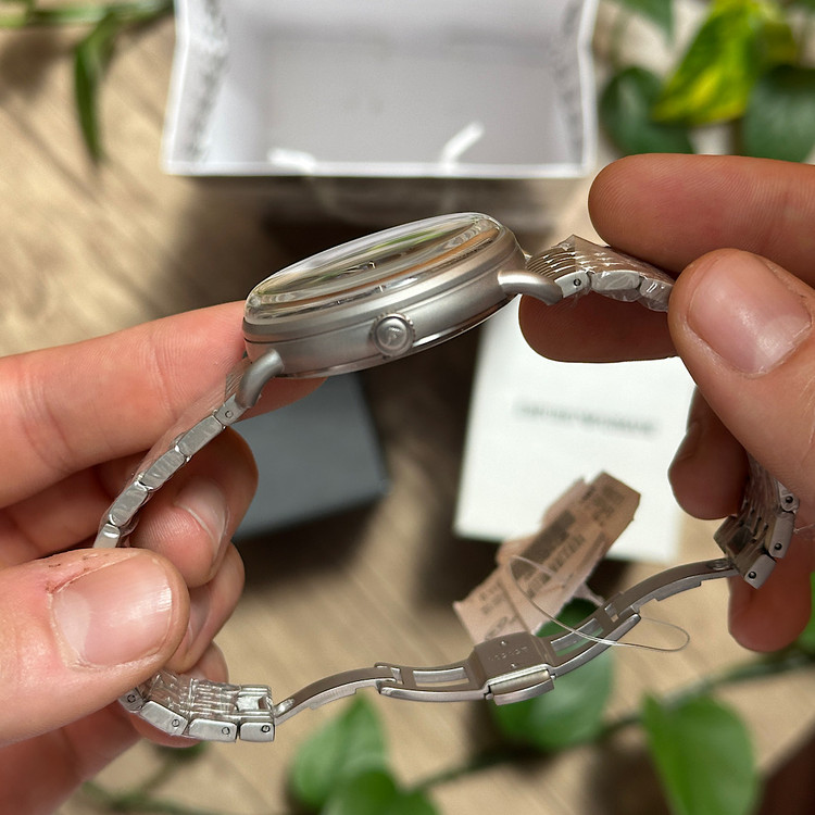 بند استیل ریز بافت جدید با نشیمن فوق العاده عالی روی مچ و سایز قاب ۴۱.۹ میلی متر مناسب تمام سایز مچ ها هماهنگی خوبی را ایجاد کرده.
