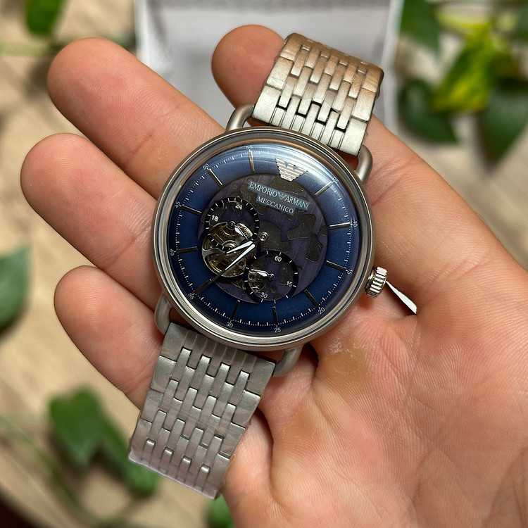 این ساعت آرمانی با طراحی کلاسیک با رنگ صفحه فوق العاده زیبا سرمه ای اوپن هارت جلوه بسیار خاصی به استایل شما خواهد داد.
