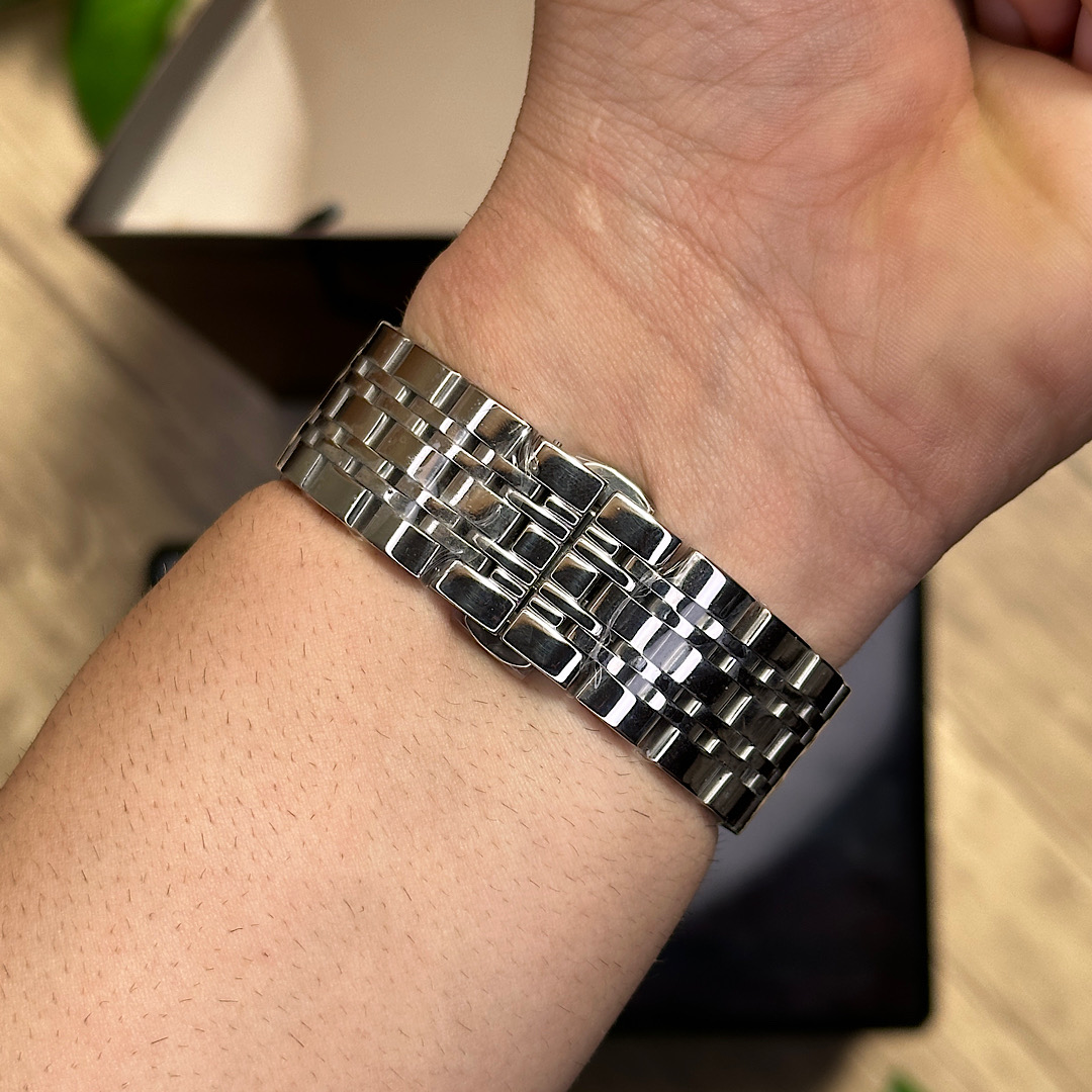 بند استیل با رنگ صفحه سیلور ترکیب رنگی که با تمام رنگ لباس ها به راحتی ست میشود و یک ترکیب عالی کلاسیک رو برای شما خواهد ساخت.