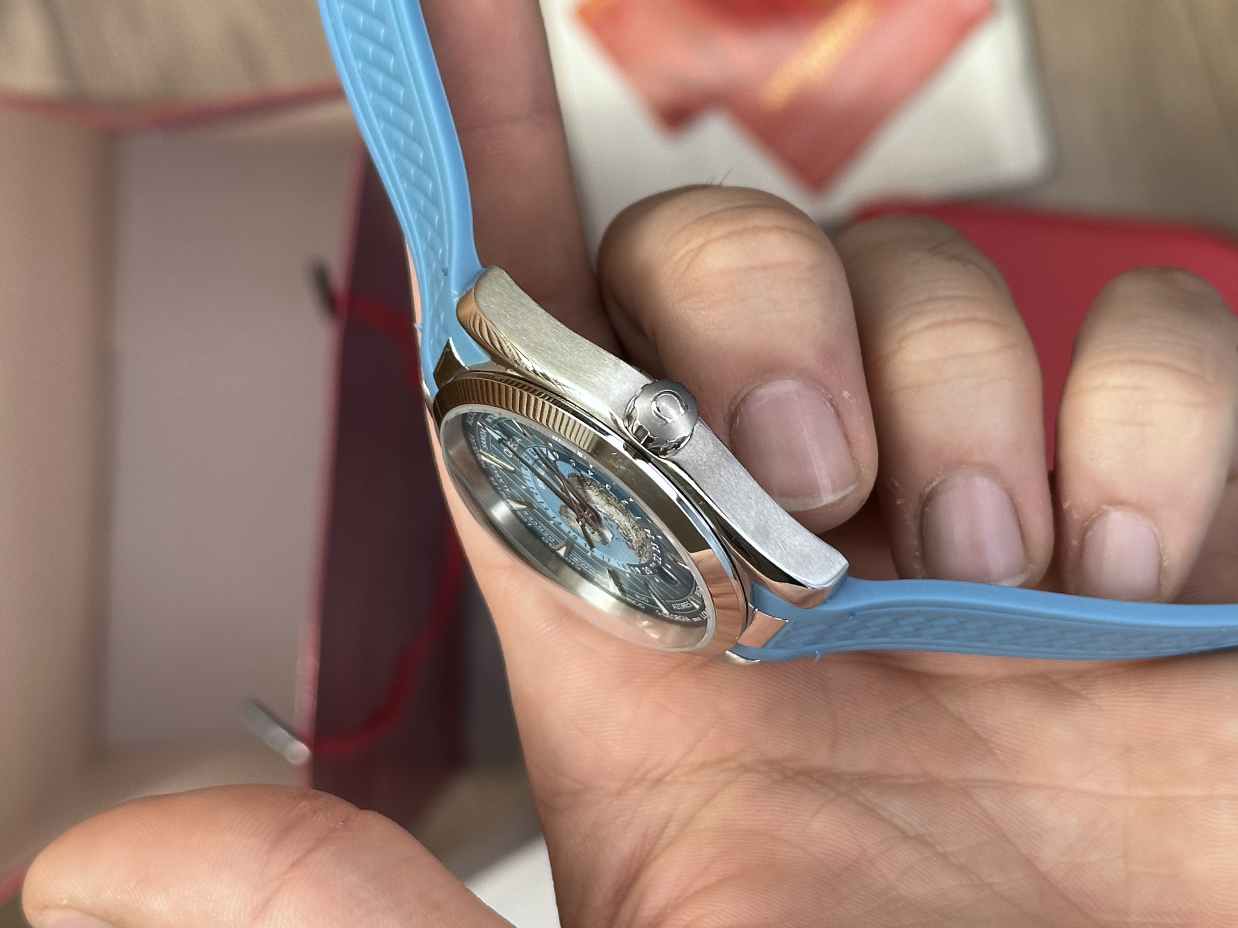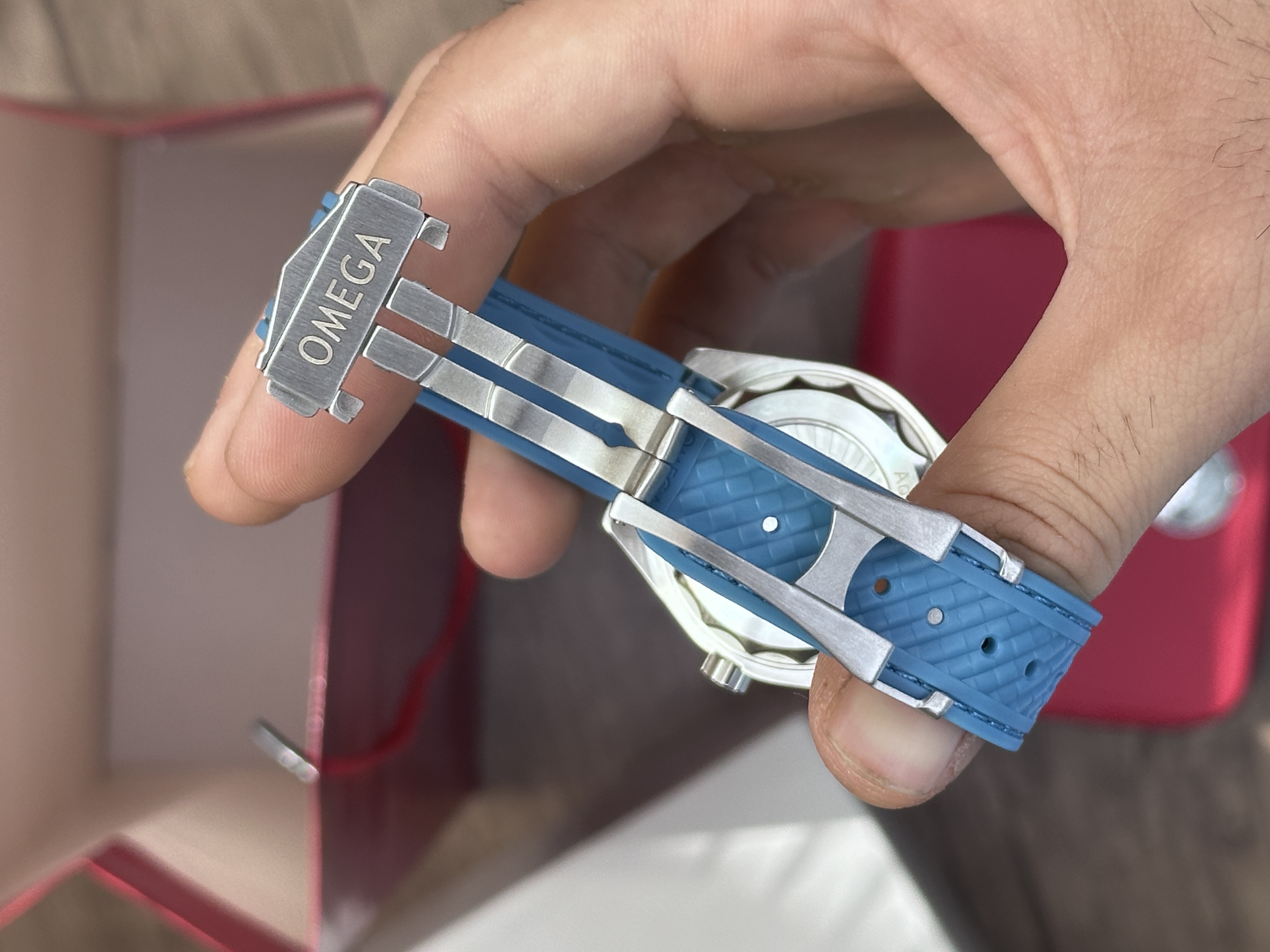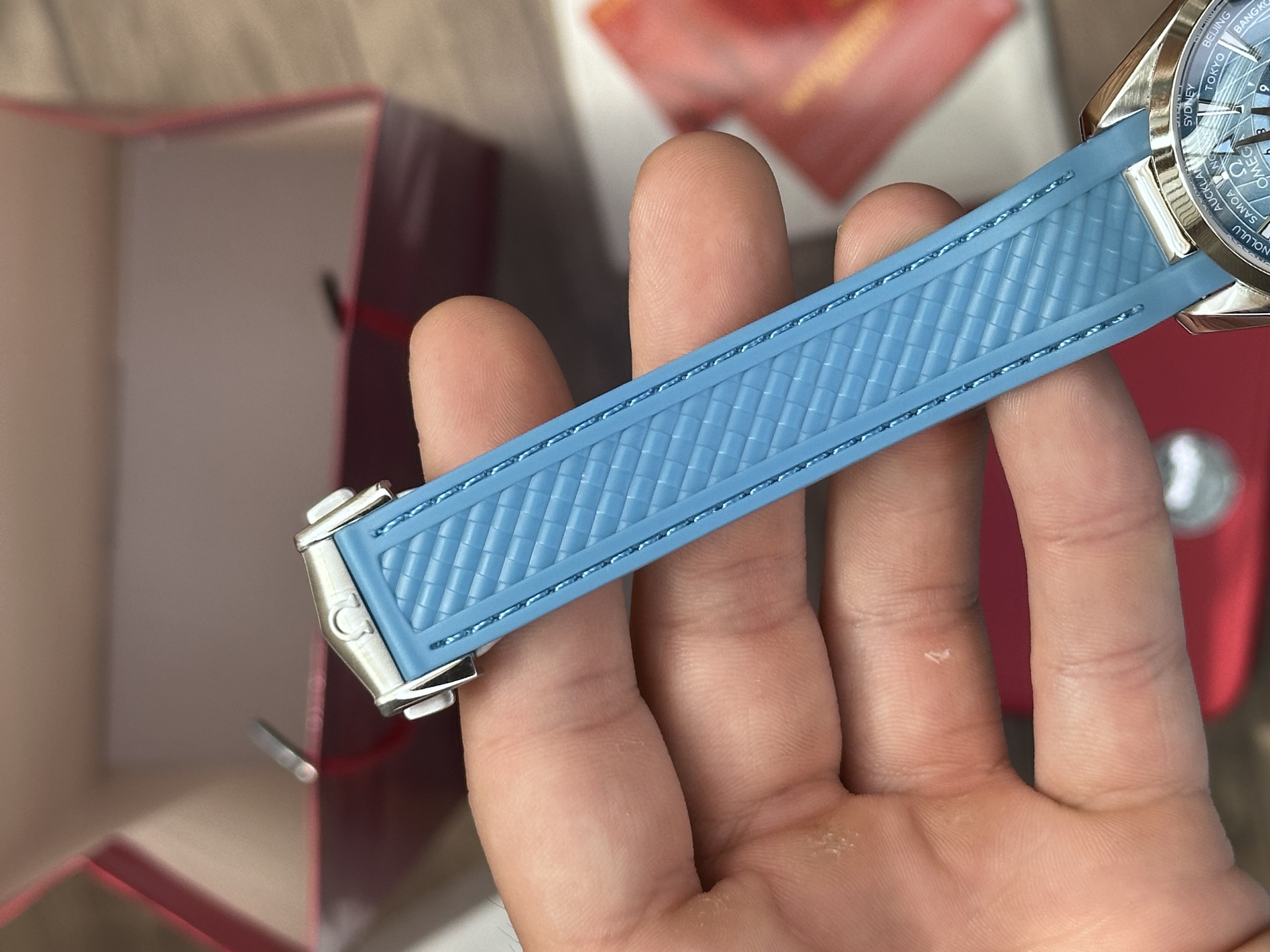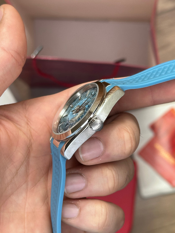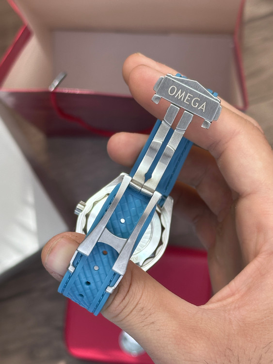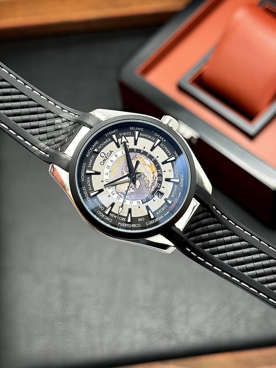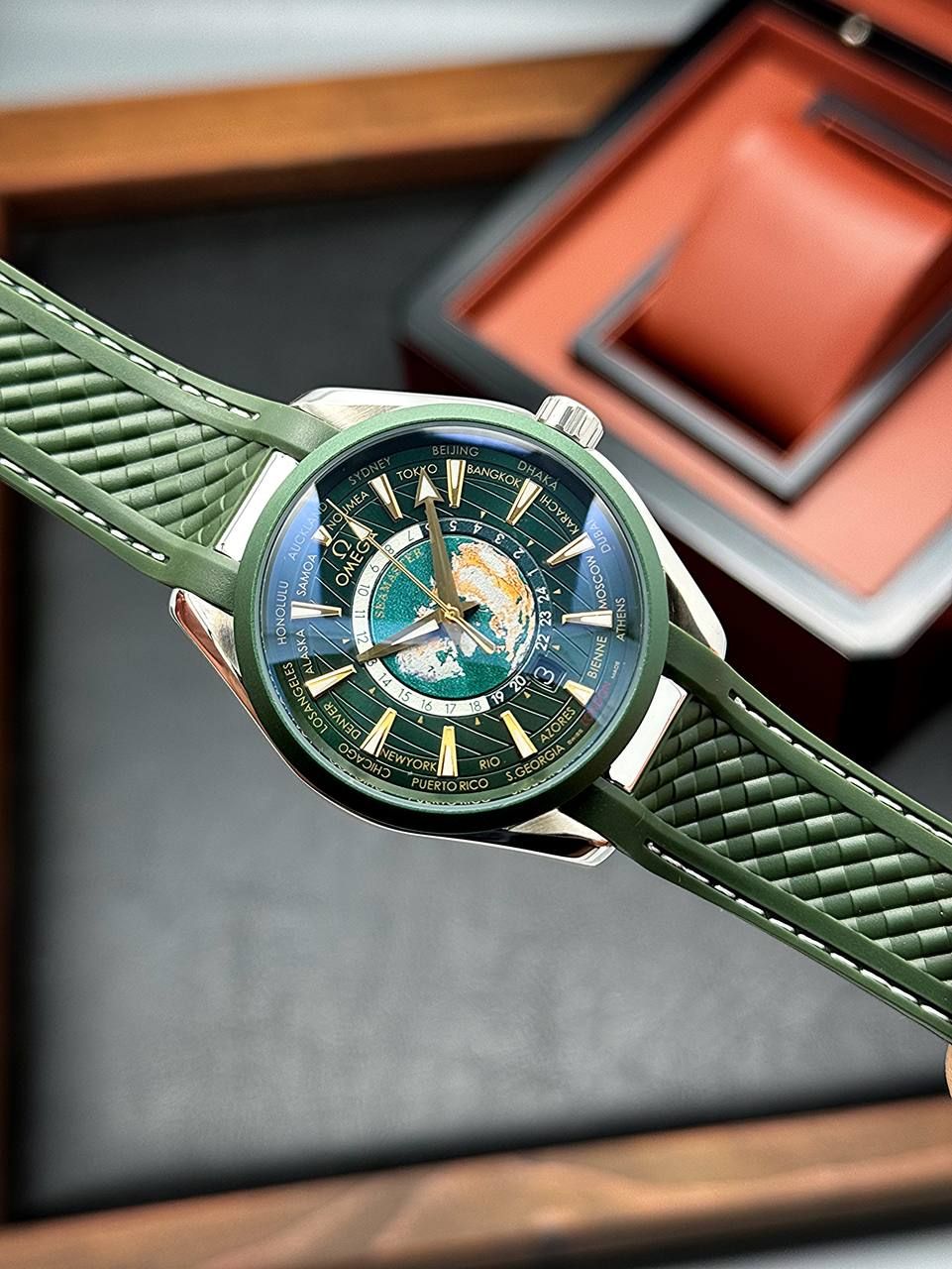 مدل امگا سیمستر جهان نما یک طراحی فوق العاده جذاب شلوغ هیجان انگیز با رنگ فوق العاده زیبای تیفانی که قطعا هر مردی رو عاشق خودش میکنه🌹