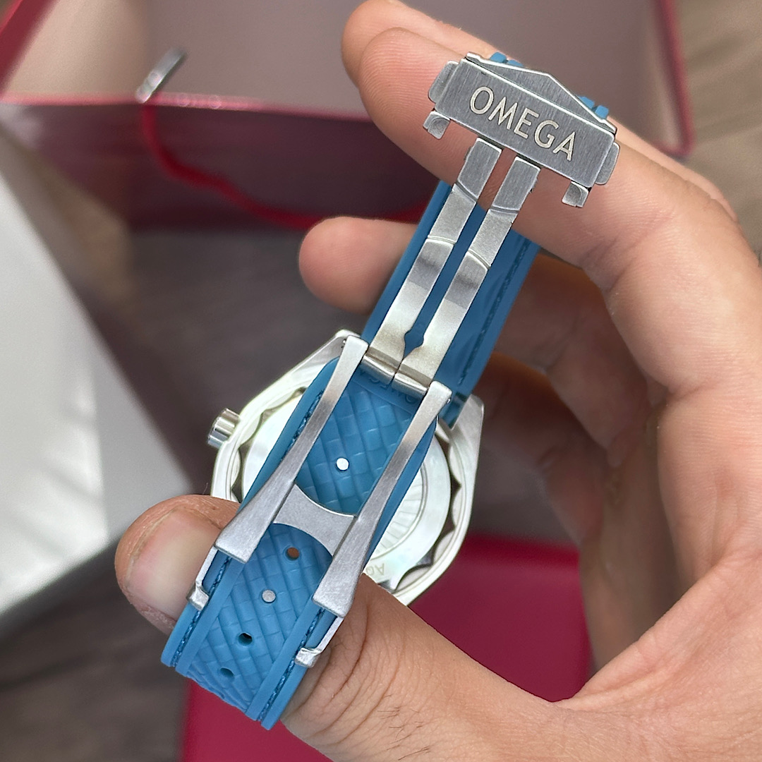 مدل امگا سیمستر جهان نما یک طراحی فوق العاده جذاب شلوغ هیجان انگیز با رنگ فوق العاده زیبای تیفانی که قطعا هر مردی رو عاشق خودش میکنه🌹